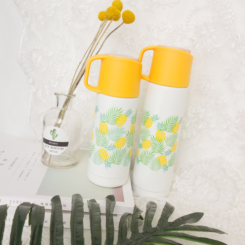 韩国黄色系潮流保温杯创意便携带盖情侣学生情侣大容量不锈钢水杯