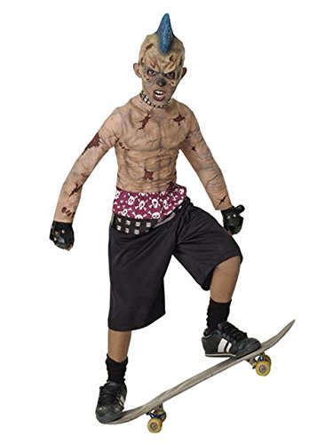 Studio : Rubies Costume Co Publisher : Rubies Costume Co Binding : Toy Product Description This creepy punk zombie costume includes the shirt, shorts, studded gloves, studded choker and mask. The Zombie Skate Punk comes in child sizes Large, Medium. The socks and makeup are not included with the zombie punk costume. Please note: This item's color may vary due to inherent manufacturing variations or your computer monitor's color settings. The item you receive will be identical or substantially similar to the item pictured in this listing. 0