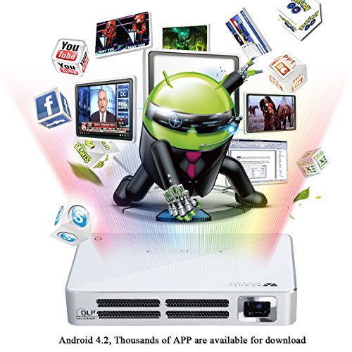 WOWOTO Pico Projector, Android 4.2 LED Movie Projector, 500 Lumen 75 ANSI, Support 1080p 3D, Built-in 2100mAh Battery, HDMI & WIFI