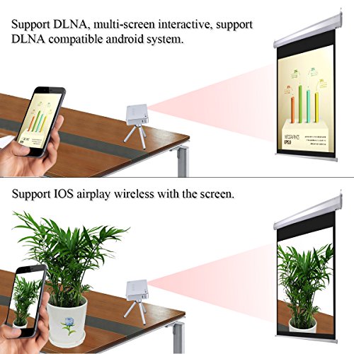 Multi-screen Sharing: Smartphone resources can be shared through the large screen by Airplay/Miracast/DLNA. Ushare App also works, which developed by WOWOTO. While the connectivity options allowed A5 Projector to be used with tablets, notebooks, smartphone and PC, your business life will be convenient and professional.