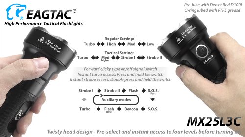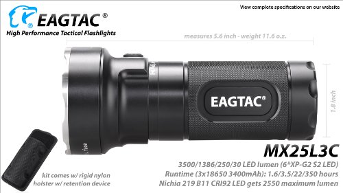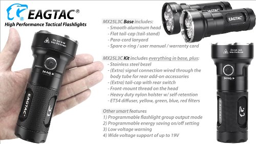 Studio : Eagletac Publisher : Eagletac Binding : Electronics Product Description MX25L3C XP-G2 S2 Base or KIT Model. "C" stands for compact version of the MX25L3. Featuring six XP-G2 S2 LEDs that offers 3500 LED lumen