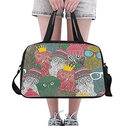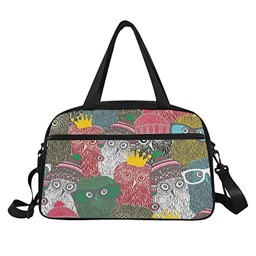 (InterestPrint)/Accessories/Luggage, Bags Travel/DIRECT FROM USA/InterestPrint Travel Duffel Tote Bag with Shoes Compartment for Women Men Crowd of Cute Doodle Owl