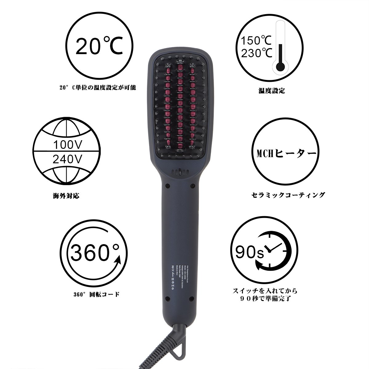 Using MCH heating technology and a large surface area brush of 12 cm × 6 cm × 4 cm, quick setting became possible.