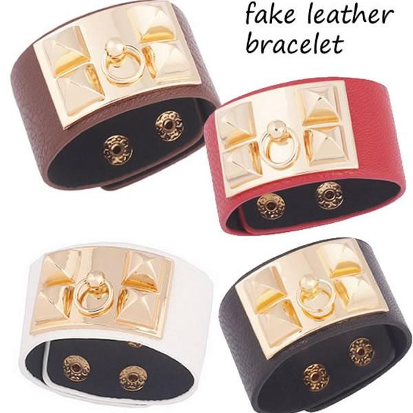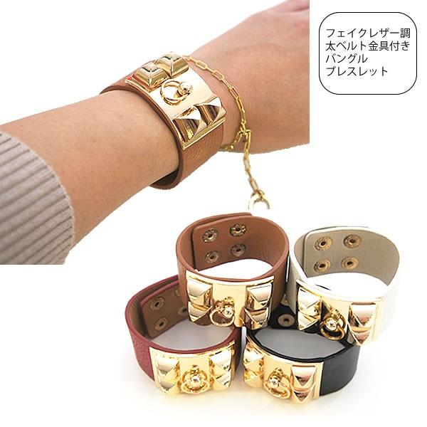 | フェイクレザー調 バングル ブレスレット ゴールド金具付き アクセサリー ベルトブレス ゴールド accessory 4カラー ネコポス可 【フェイクレザー ブレスレット レディース 女性 ブレス bracelet パーティー アクセ モード ベルト】 | |