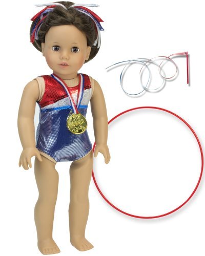 This red, white & blue gymnastics set includes 5 great pieces including a gymnastics leotard, headband and three fun accessories to complete the set! © 2013 Sophia's- All Rights Reserved. Not affiliated with American Girl®, Reg. Trademark of American Girl, LLC. Doll Not Included