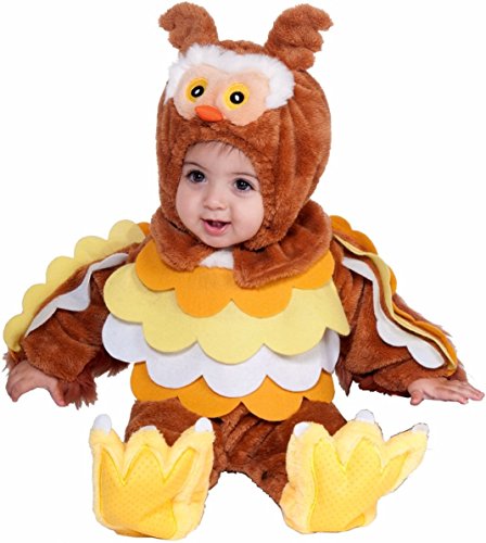 -. Binding : Apparel -. Brand : Forum Novelties -. Color : Brown -. Department : boys -. Feature : Available in Infant size (18.5-23 lbs.) and Toddler size (2-4) / Extra-soft fluffy material / Includes one jumpsuit and headpiece -. ProductGroup : Apparel -. ProductTypeName : DRESS -. Title : Owl Baby Costume deluxe