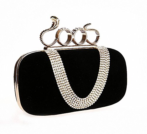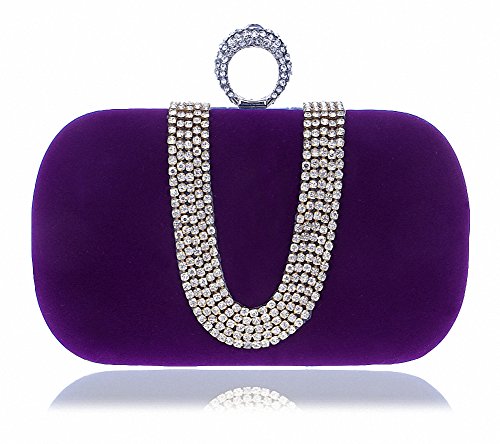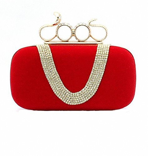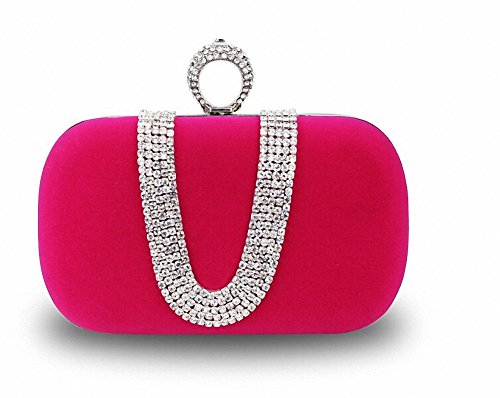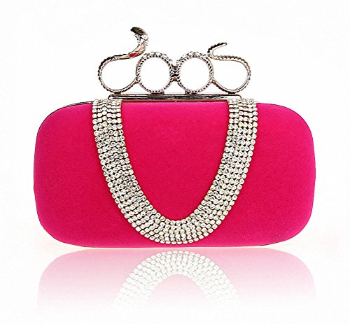 Afibi Women Crystal Finger Evening Party Handbags Shoulder Bag Clutch (Pink)