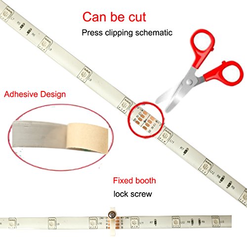 EASY AND FLEXIBLE INSTALLATION: Mount end-to-end for bendable or angled patterns, or in continuous rows. 3M adhesive tape backing can be fit on any dry and flat surface, led strip light can be cut between every 5 leds without damaging the rest strips