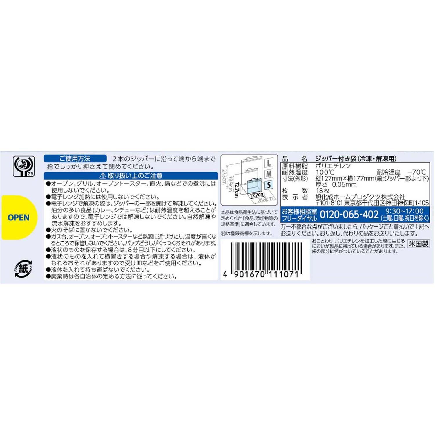 Ziploc freezer bag small 18 pieces