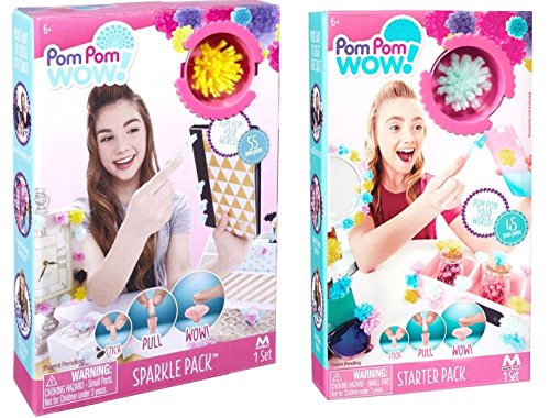 Turn your world from plain to wow with Pom Pom Wow. Pom Pom your world by placing pom poms on the items you love! Pom Pom your room, your school supplies, and your style. The Starter Sets includes 45 pom poms in 7 colors and 50 adhesive dots; the Sparkle Pack includes 55 sparkle pom poms in 6 colors and 60 adhesive dots.Feature