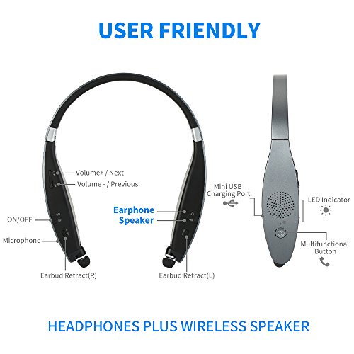 -. Title : Bluetooth Speakers Headphones with Microphone for iPhone 2017 Latest Design Wireless Headset FoYoung Wireless In Ear Headphones Plus Bluetooth Speaker 32 Hours Long Battery