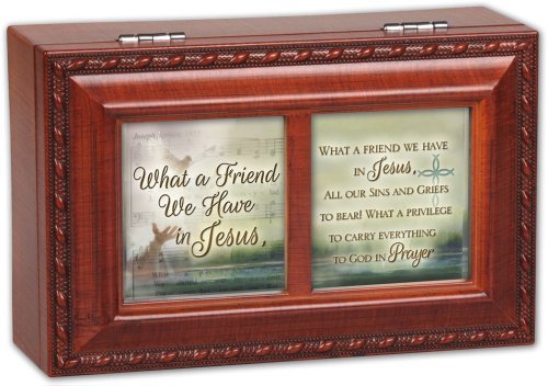 -. Binding : Toy -. Brand : Cottage Garden -. EAN : 0775006702011 -. Feature : Cottage Garden A Friend We Have in Jesus Musical Wood Grain Petite Music Box -. Label : Cottage Garden -. Manufacturer : Cottage Garden -. MPN : 6702011 -. PackageQuantity : 1 -. PartNumber : 6702011 -. ProductGroup : Toy -. ProductTypeName : TOYS_AND_GAMES -. Publisher : Cottage Garden -. Studio : Cottage Garden -. Title : Cottage Garden A Friend We Have in Jesus Musical Wood Grain Petite Music Box by Cottage Garden -. UPC : 775006702011