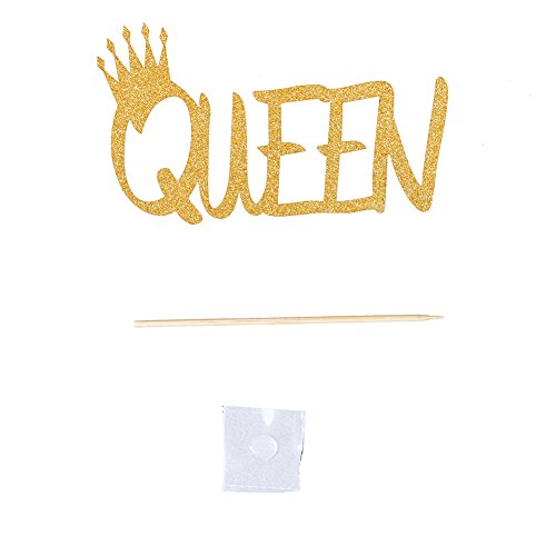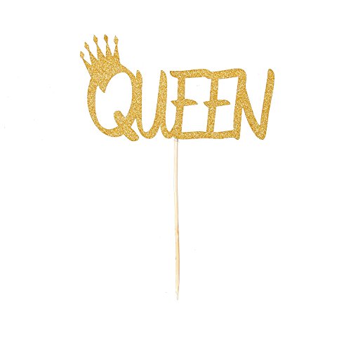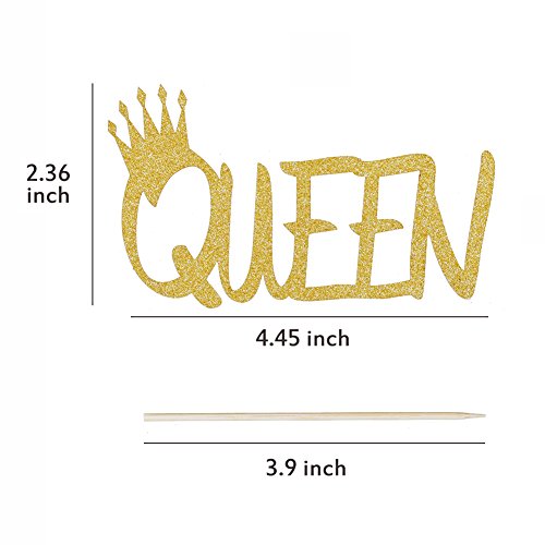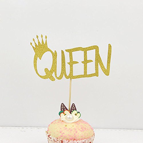 Bidlsbs 12pcs Glitter Gold Cupcake Topper Queen Letter With Glitter Crown DIY Handmade Table Cake Decor Girls Birthday Baby Shower Decoration Topper