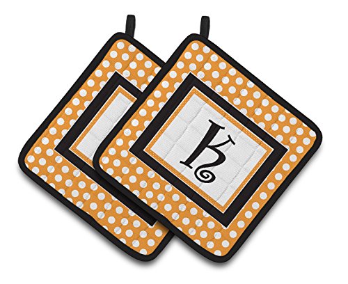 Caroline's Treasures Monogram Initial K Orange Polkadots Pair of Pot Holders CJ1033-KPTHD, 7.5HX7.5W, Multicolor