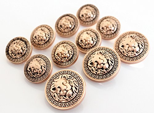 YCEE 11 Pieces Gold Vintage Antique Metal Blazer Button Set (weighty) - 3D Lion Head - For Blazer, Suits, Sport Coat, Uniform, Jacket