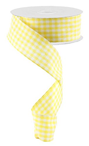 Gingham Check Wired Edge Ribbon, 1.5" x 10 Yards (Dark Yellow, White)