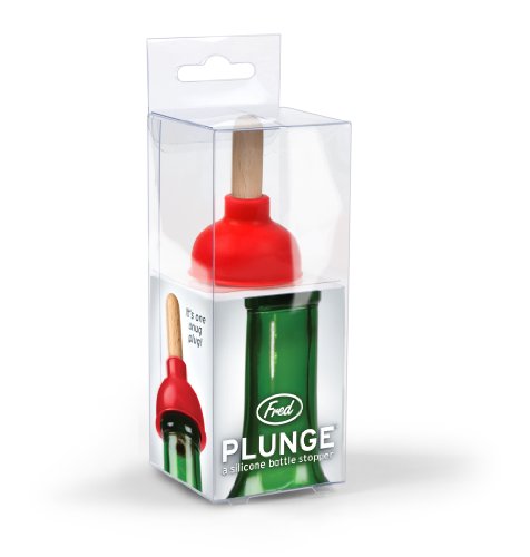 - Silicone bottle stopper shaped like a plunger