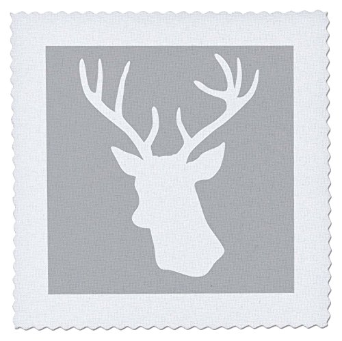 3dRose White Deer with Antlers Silhouette on Wintery Gray - Grey Stag Shadow Stylish Winter Christmas Gifts - Quilt Square, 14 by 14-Inch (qs_112848_5)