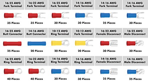 InstallGear 520pcs Crimp Ring Terminal Connectors Kit with Spade Terminals, Fork Terminals, Ring Terminals and Butt Connectors