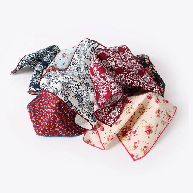 | [해외]수제 남성 포켓 스퀘어 꽃 코튼 손수건 남자 웨딩 캐주얼 정장 포켓 손수건 25*25 센치메터 패션 손수건 |