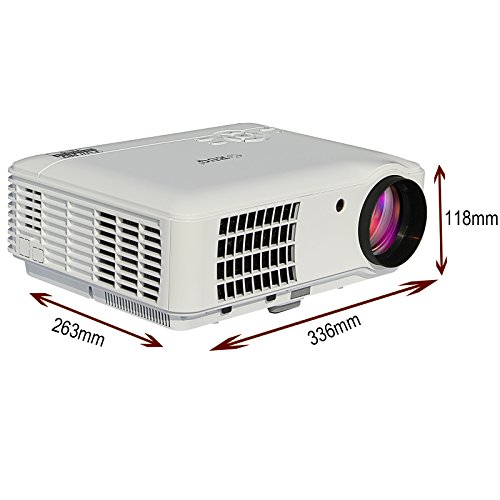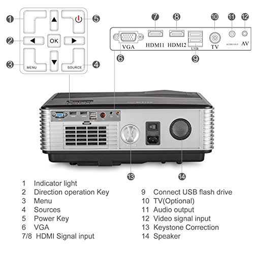 -. Feature : EUG latest projector--can projector large size picture in short distance / Wonderful Acoustics: two 5W built-in Speakers with excellent effect. / Can read USB storage, support the most common Video, Audio and Picture format, Support Red-Blue 3D / Easy to contact with you device: with Component Video(Ypbpr), VGA, Dual HDMI, Dual USB, TV, Audio In/Out / Directly sold from factory, the same quality with the lowest price