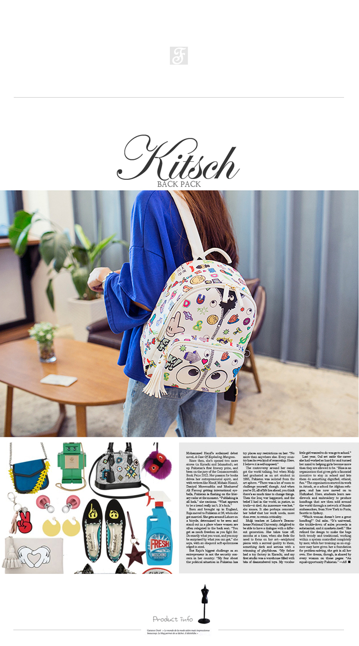 Kitsch Tassel Backpack RP309 3 Color Women Men Casual Student Travel Light Daily