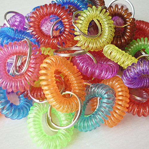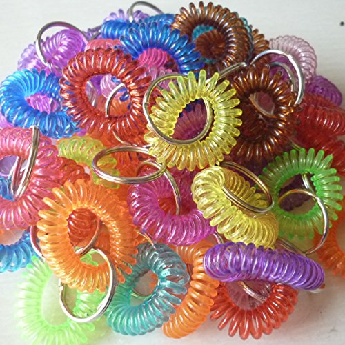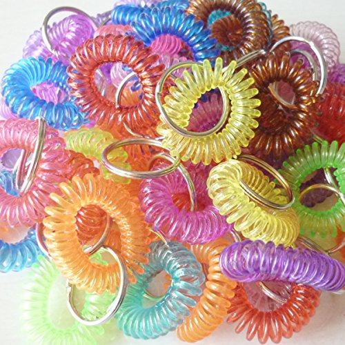 his lightweight Wrist Coil Key chain - 50 Pack helps you keep track of your keys and doubles as a fidget toy. Attach your keys to the key ring and wear it like a bracelet. You can also attach name tags or charms to the ring and loop the bracelet around water bottles and other objects for identification.