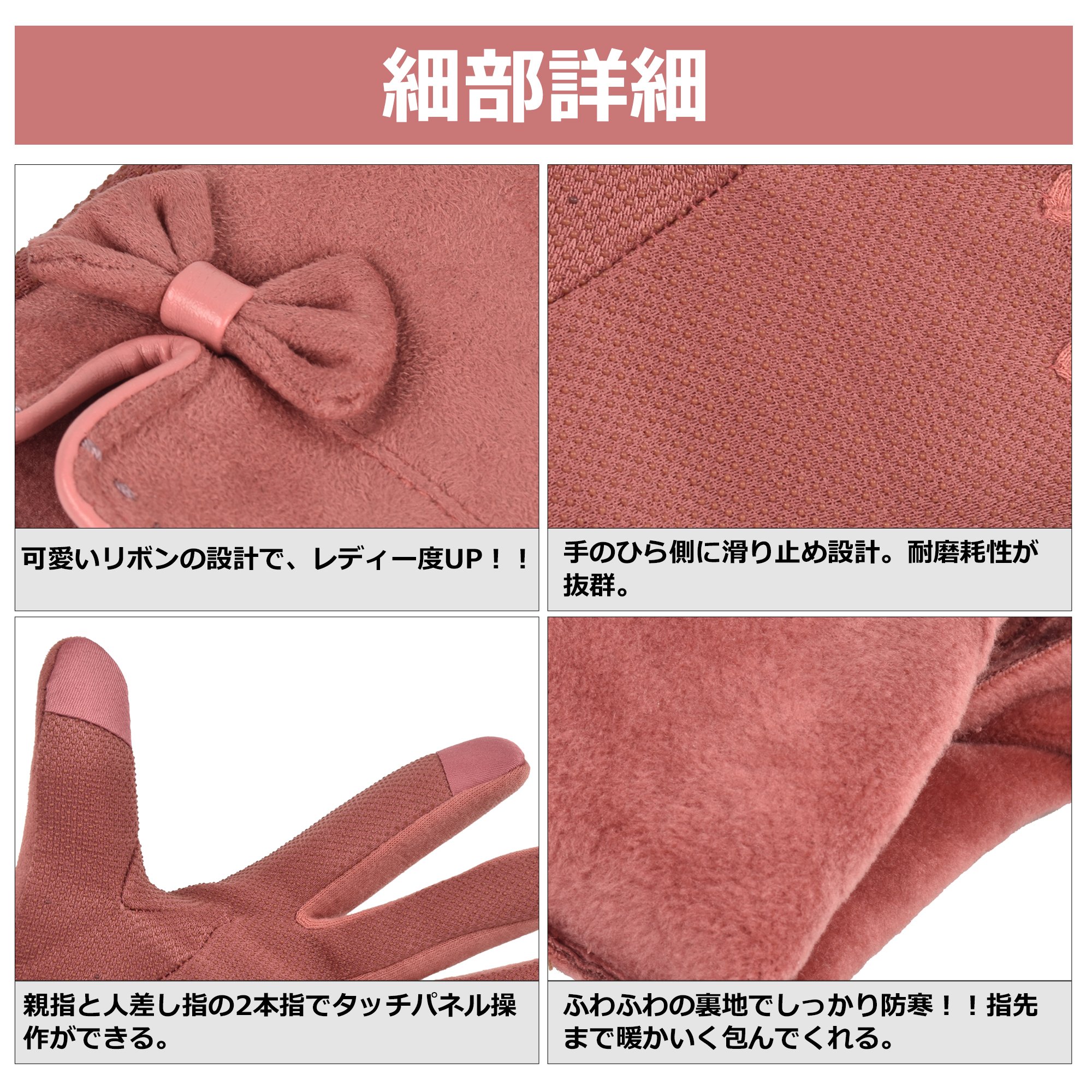 Because it adopts a fleece material which is durable and hard to wrinkle on the lining, a feeling of a gentle and warm feeling emerges from the moment when you put hands with a gentle touch.