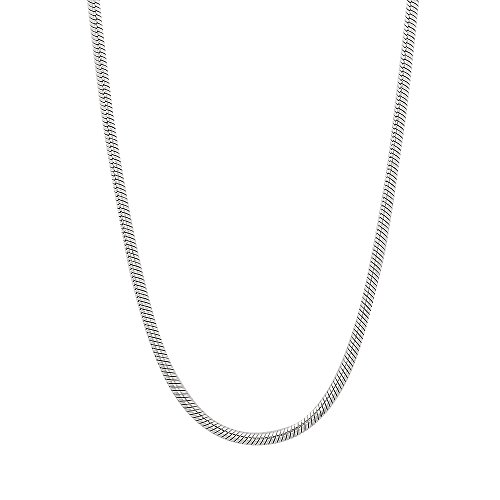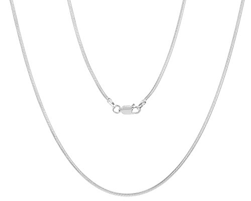 Smooth, round ribbon-like plates of this solid .925 sterling silver 1.5mm snake chain join to create a continual flexible tube. Crafted in Italy, this nickel-free dimensional chain is available in several lengths and secured by a lobster claw clasp.