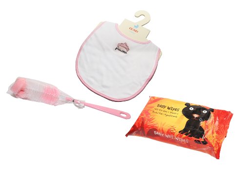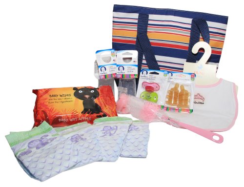 -. Feature : Great Gift for New Parents! / Has all the necessary items for a day out in the park / Includes: Baby Bottles, Extra Nipples, Diapers, Bib, Bottle Brush, Wipes and Pacifiers in a Great Thermos Cooler Bag / Separate sets for boy, girl or general / Walk out of the baby hospital with nothing else than this great kit!