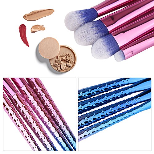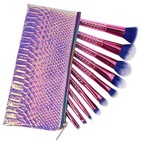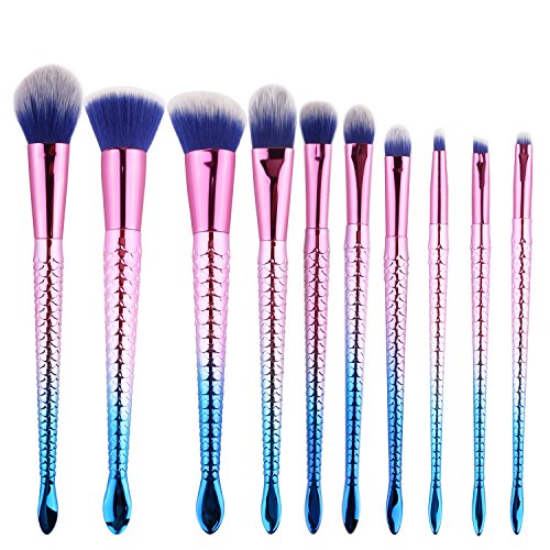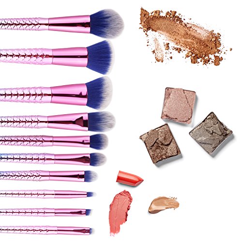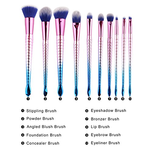 MEYSHAR Makeup Brushes 10 Pcs Premium Cosmetic Mermaid Makeup Brush Set with Bag Professional Cosmetic Contour Blending Eyeshadow Lip Brush Blush...