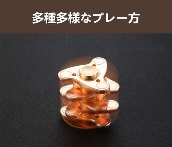 【サイズ】約50*50*11mm【カラー】type1、type2、type3、type4、type5、type6【素 材】真鍮製【セット内容】ハンドスピナー1点のみ(※他は商品に含まれません)【使用方法】真中の丸い部分を上と下で2本の指で押さえて別の指で強く弾きます。そうしますと勢いよくスピンします。【POINT】●トリックがあるわけでもなさそうな単純に回転させるという遊びが楽しいです。●コンパクトで軽量で、最適な小型サイズ、持ち運びが簡単。10歳の子供から大人まで適合です。【ご注意】※室内、室外での撮影により実際の商品素材の色と相違する場合もありますのでご了承下さい。※本製品の利用による本体の紛失、破損、汚れには一切保証いたしかねます。あらかじめご了承ください。※本製品は、改良、改善の為、予告なくデザインや仕様などを変更する場合がありますので、予めご了承願います。※取り外れる構造で、お子さんに呑まないようにお気をつけてください。