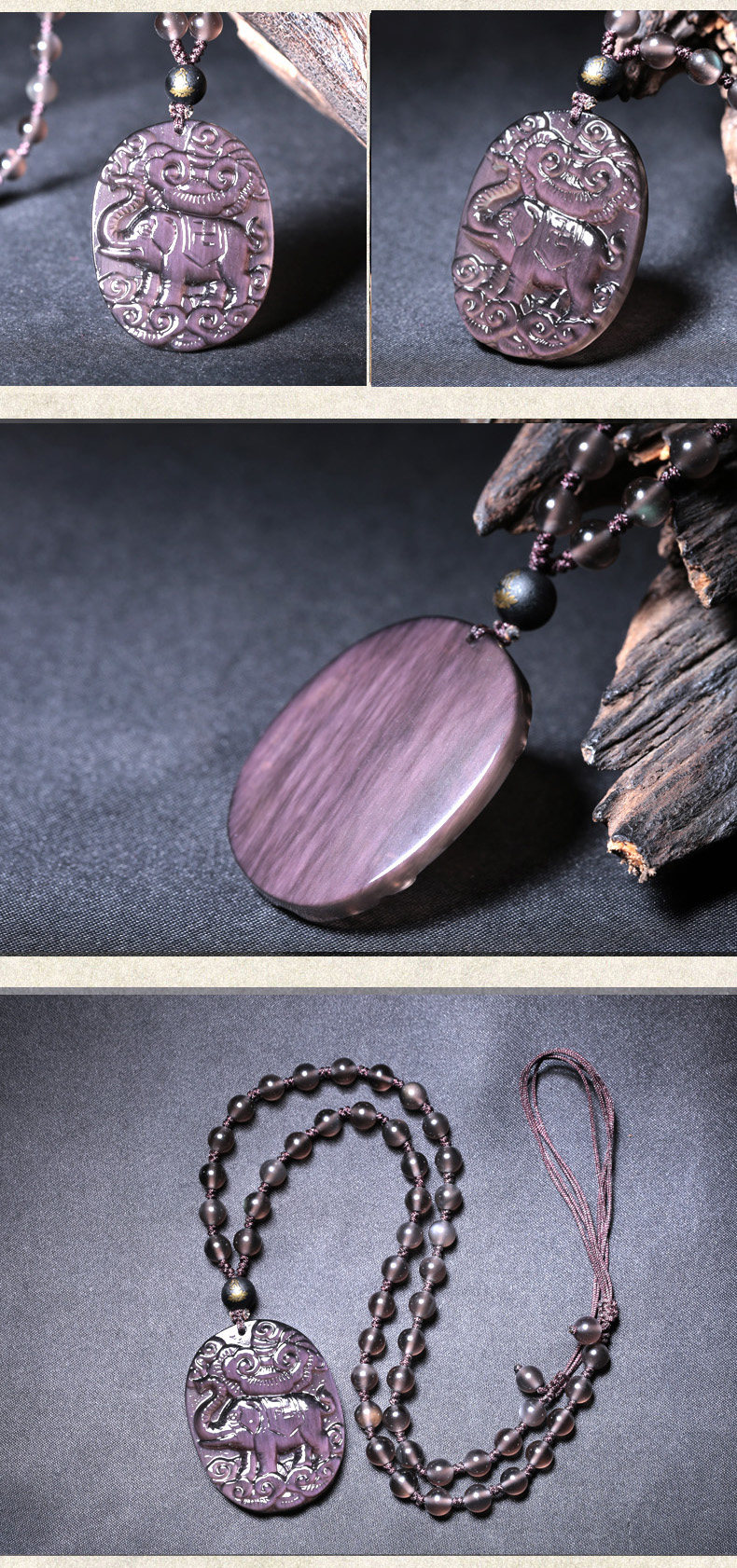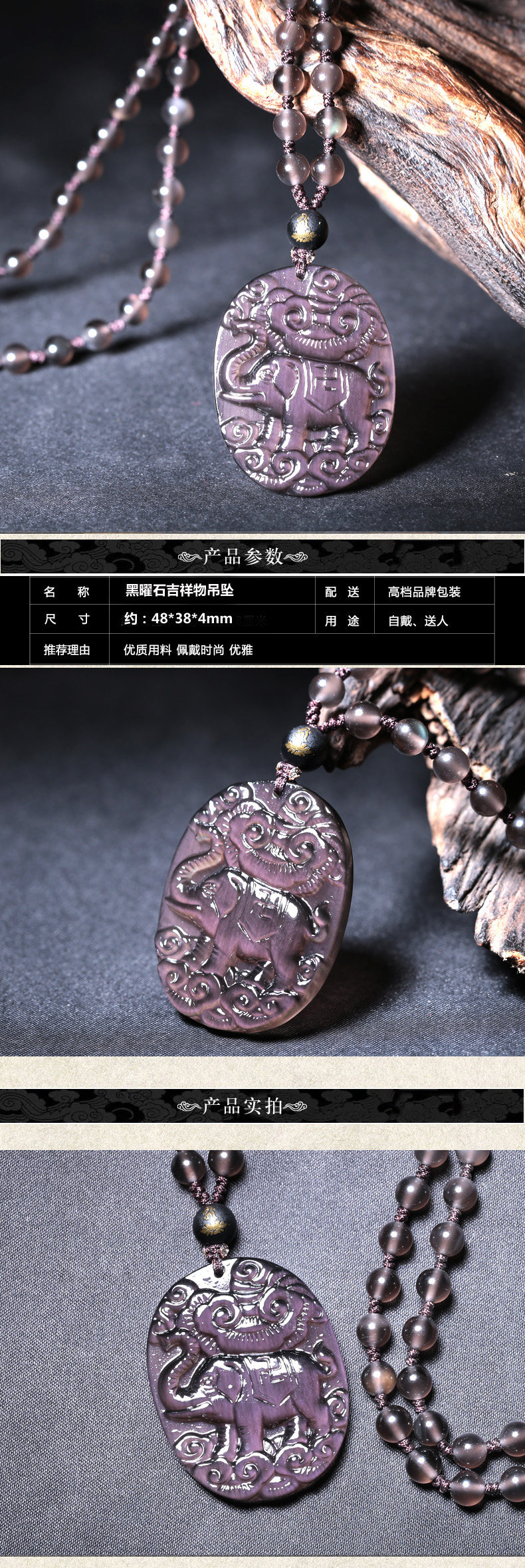 开光彩虹眼冰种黑曜石大象吊坠龙象般若紫贵天象吊坠挂件项链男女