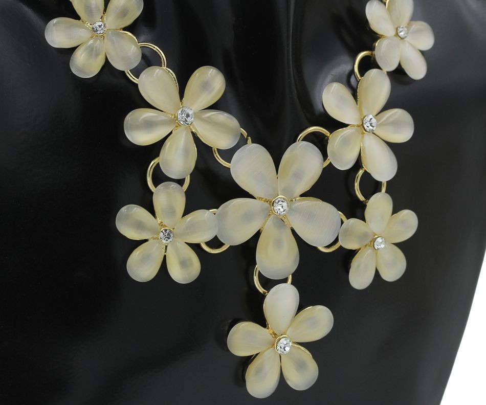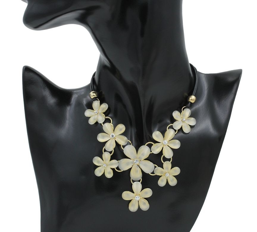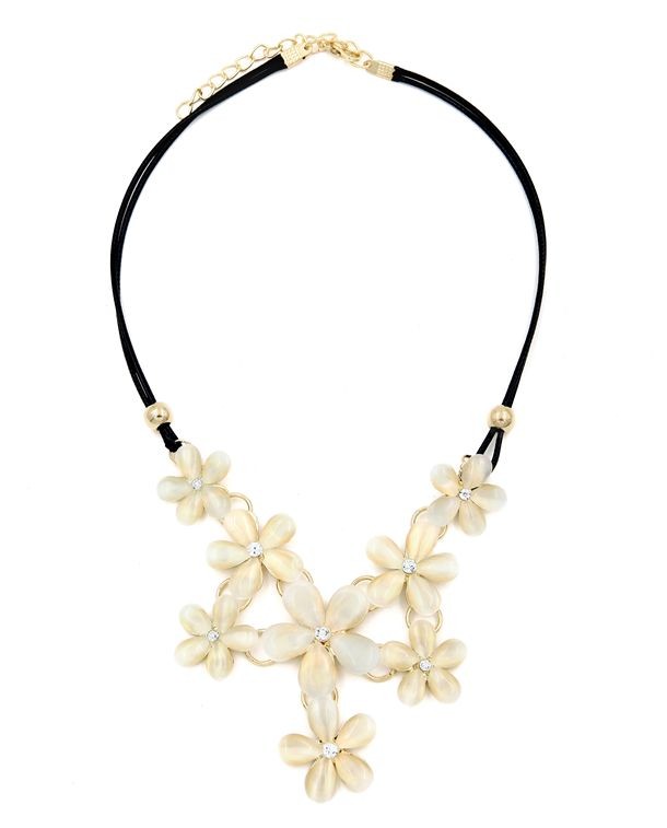 ◆立体感のあるフラワーモチーフが大人かわいいビジューネックレス。