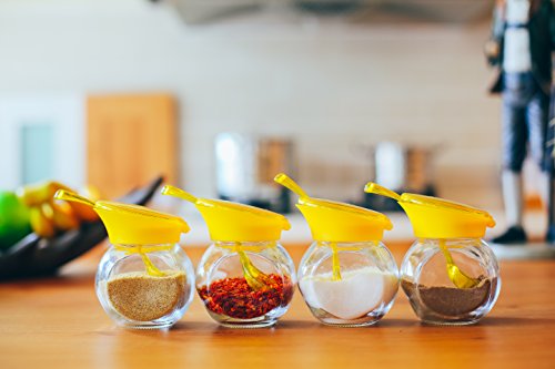 JingleBells 7oz Glass Spice Jar with Plastic Lid with Plastic Spoon,Set of 4