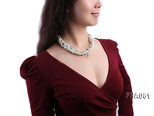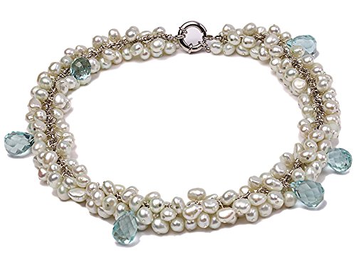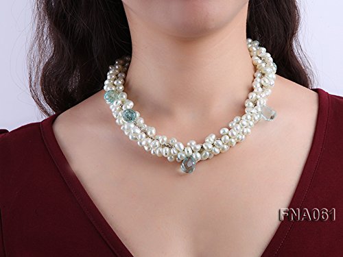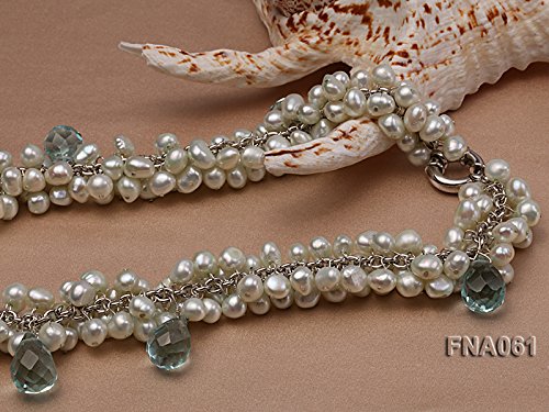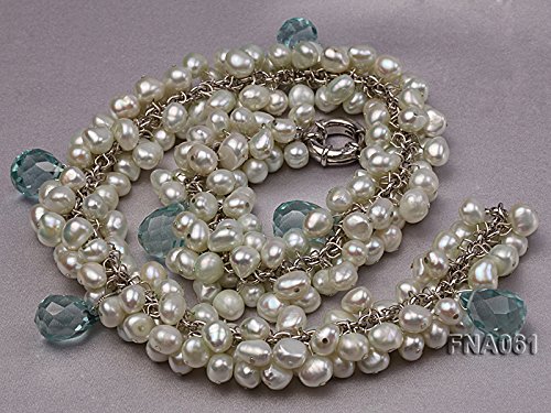 Description *This is a very pretty necklace set with 8-9mm Light-blue off-round cultured freshwater pearls and blue drop-shaped crystal beads.