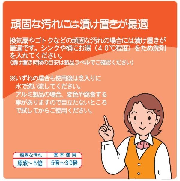 【用途】 レンジ、オーブン、フライヤーなど、熱調理器具類の焼き付き油汚れ、レンジフード、グリスフィルター、ステンレスの壁、床のこびりついた油汚れに。