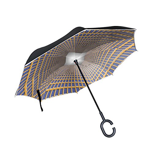 (AHOMY)/Accessories/Umbrellas/DIRECT FROM USA/AHOMY Colorful Ring Grid Background Pattern Large Double Layer Inverted Umbrella Windproof UV P...