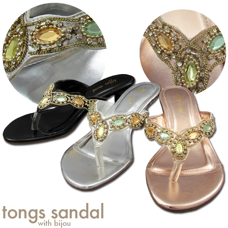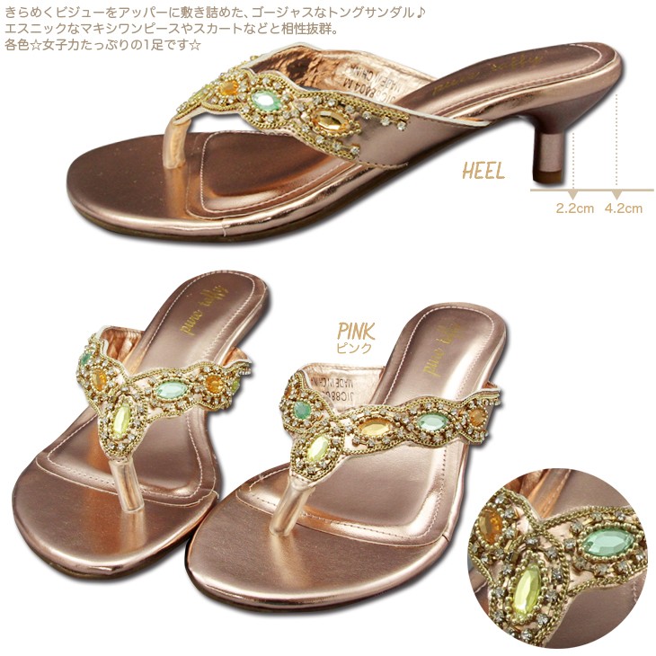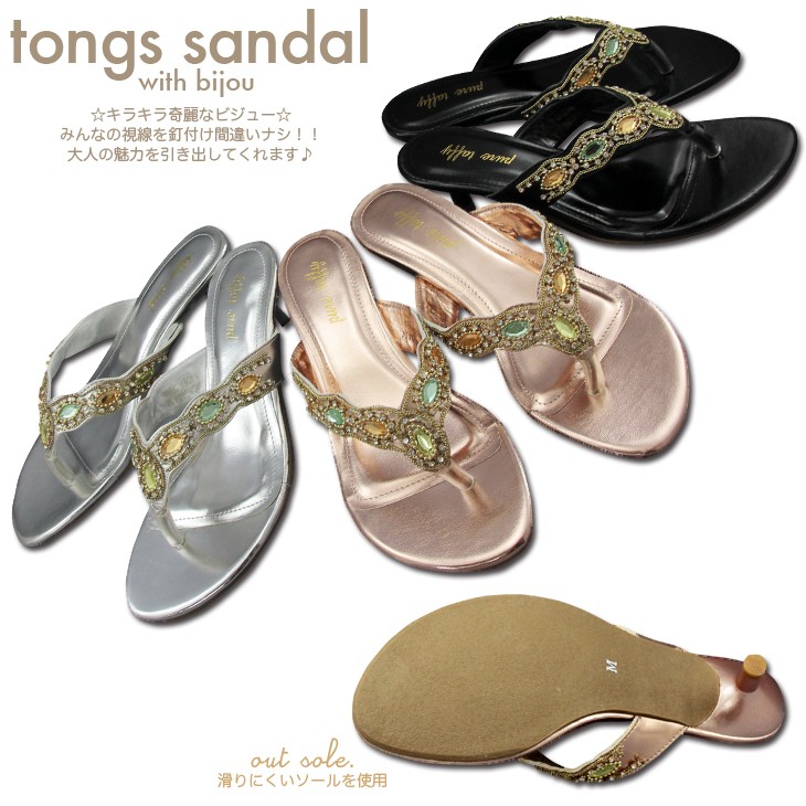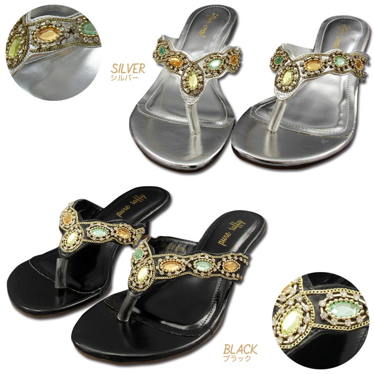 きらめくビジューをアッパーに敷き詰めたゴージャスなトングサンダル♪エスニックなマキシワンピースやスカートなどと相性抜群。22.5cm 23.0cm 23.5cm 24.0cm
