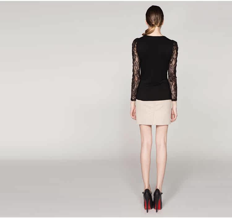 | 简洁大方的圆领设计,突出女性颈部曲线。肩部整体采用修身版型,衬托窈窕曲线,无论单穿或搭配都能彰显出时尚范儿,有种神秘的女人味。袖子采用镂空的设计,衬托出了女性柔美的一面,精致可爱,富有女性的优雅感。 |