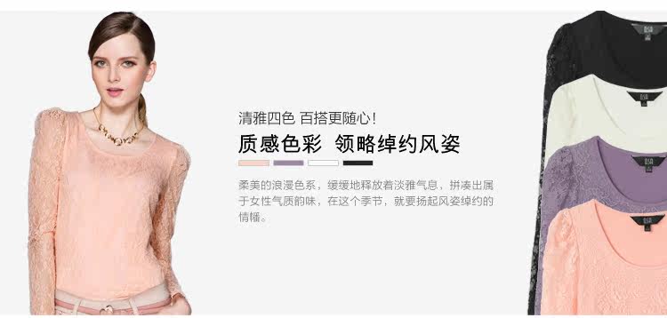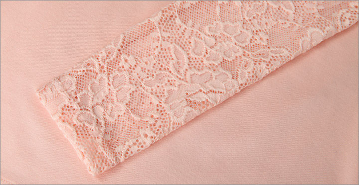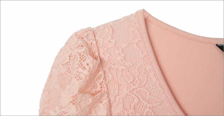 | 基本款的t恤款式,经典且百搭。以柔美的剪裁加入蕾丝的设计元素,将古典高雅的气质娓娓道来,袖部蕾丝面料带着轻微的透明感,隐约间呈现出女性专属的柔美气质,款式轻灵而不乏美感,可以提升女性的气质指数,下装随意搭配都可以呈现出不一样的时尚感。 |