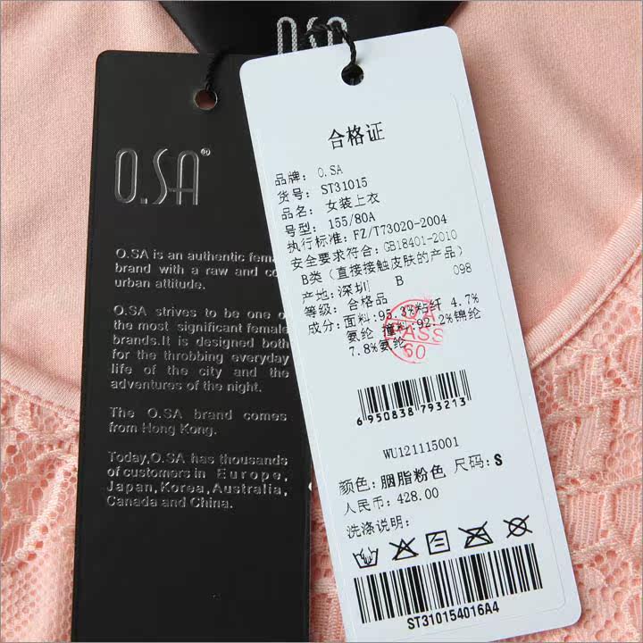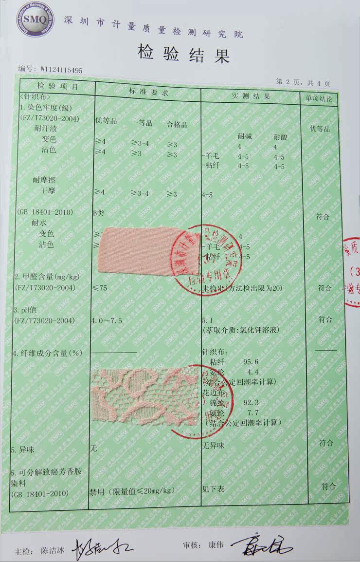 | 商品成分 | 面料:95.3%粘纤 4.7%氨纶 撞料:92.2%锦纶 7.8%氨纶 |