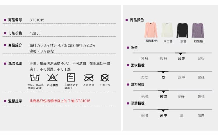 | 温馨提示 | 此商品只包括模特身上的T恤ST31015 |