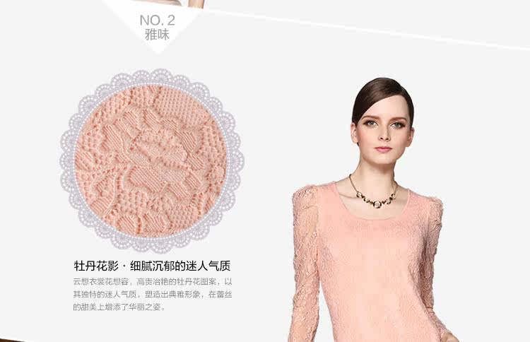 ![]() | 传说女性是因为有了蕾丝梦,才开始娇艳起来,梦幻的蕾丝装点出一个甜蜜的美梦,如一朵朵繁花绽放出沁人的芳香,增添了款式的华丽之姿。经典的圆领显得简约时尚,泡泡袖的设计犹如锦上添花,与蕾丝融合塑造出典雅的款式,而袖部细密镂空的透视感,隐藏着些许妩媚韵味。线条流畅,版型修身,浪漫的色系缓缓释放出淡雅的时尚气息。 | ||||||