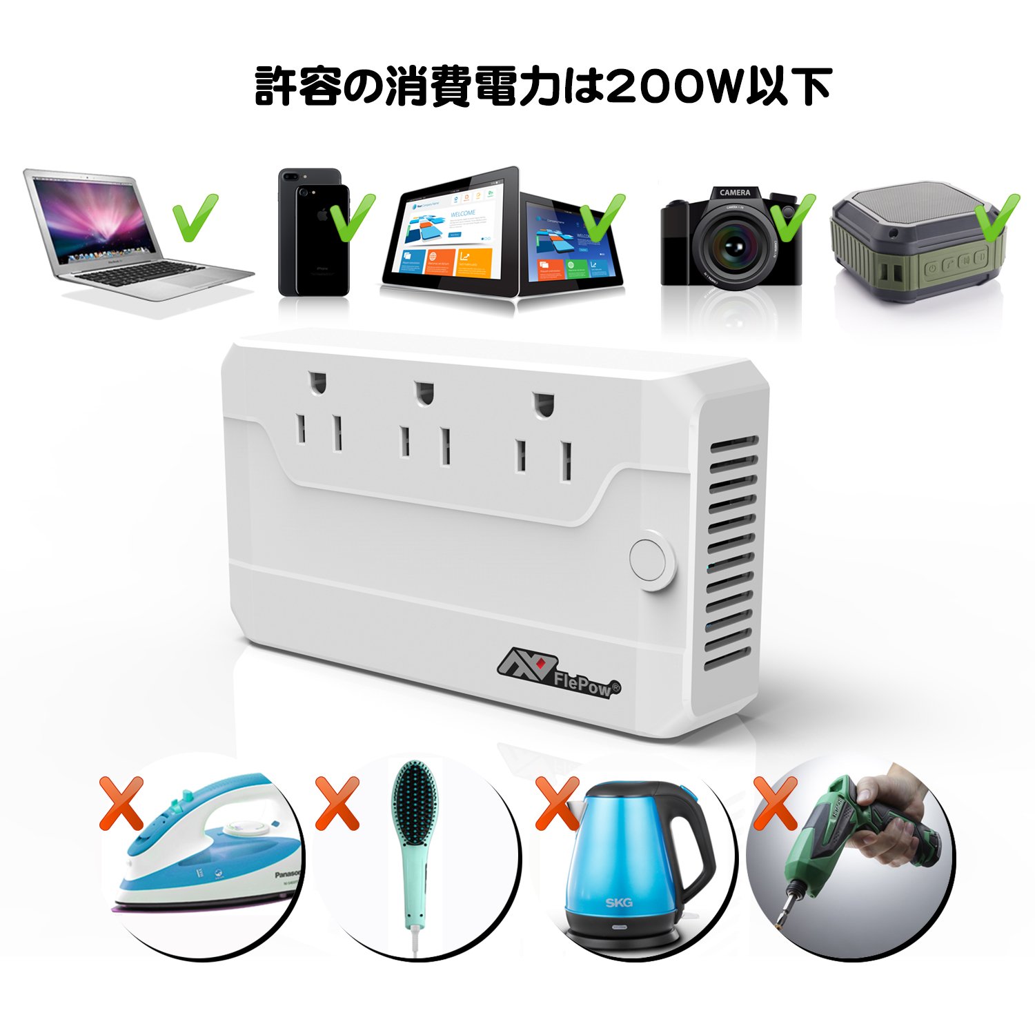 ※ Since the allowable power consumption is 200 W, please be careful not to exceed the total power consumption of the electric appliances used 200 W.