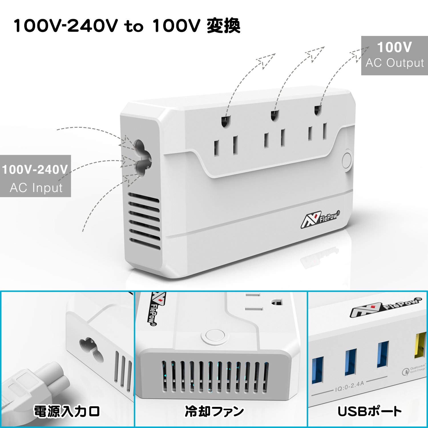 Automatically convert and output the voltage of the local power outlet (90 V - 240 V) to 100 V which can be used by Japanese electric appliances.