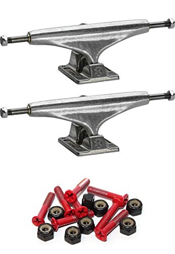 Studio : Independent Publisher : Independent Binding : Misc. Product Description These brand new Silver Independent trucks have a 139mm hanger, and a 8" axle. Independent skateboard trucks are known for being some of the most versatile trucks on the market. Independent STD Silver Skateboard Trucks - 139mm Hanger 8" Axle (Set of 2) guarantees a smooth ride. NOTE: Sold as a set of two (2) trucks. Includes: One (1) set of two (2) Silver Independent STD Silver Skateboard Trucks - 139mm Hanger 8" Axle (Set of 2) plus Warehouse Skateboards Standard Phillips Head Red Skateboard Hardware Set - 1" (includes eight (8) bolts and eight (8) matching lock nuts). 0