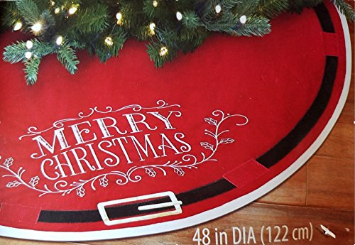 Christmas Tree Skirt - Merry Christmas with Santa Claus Belt Decoration - 48 Skirt