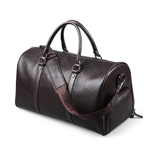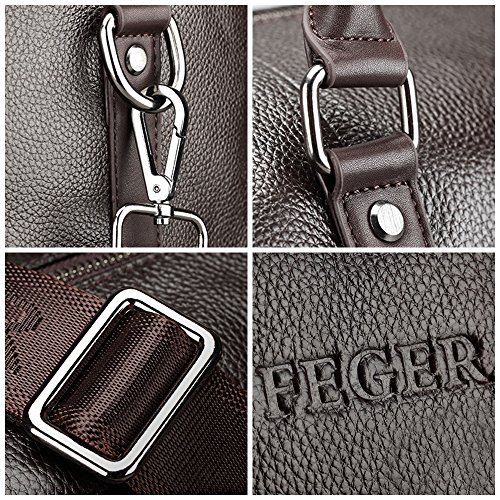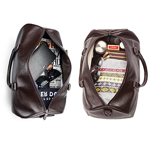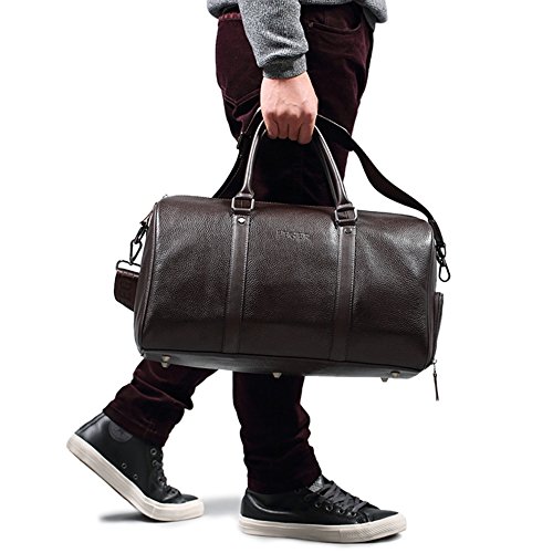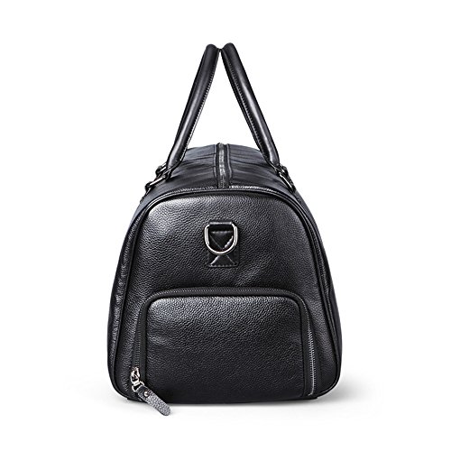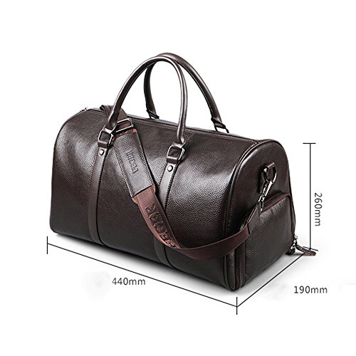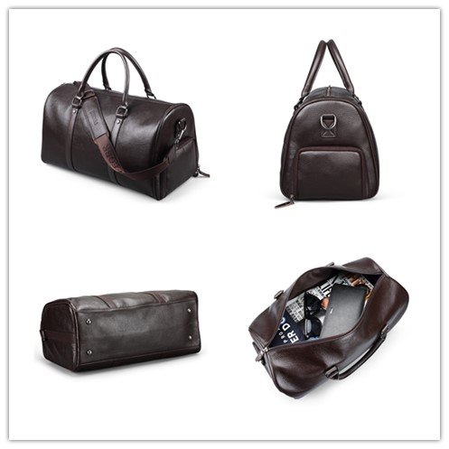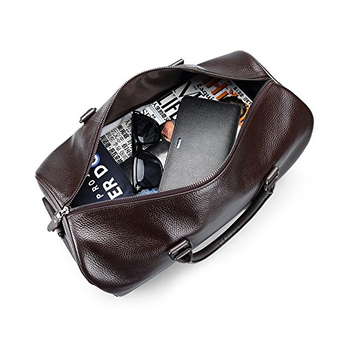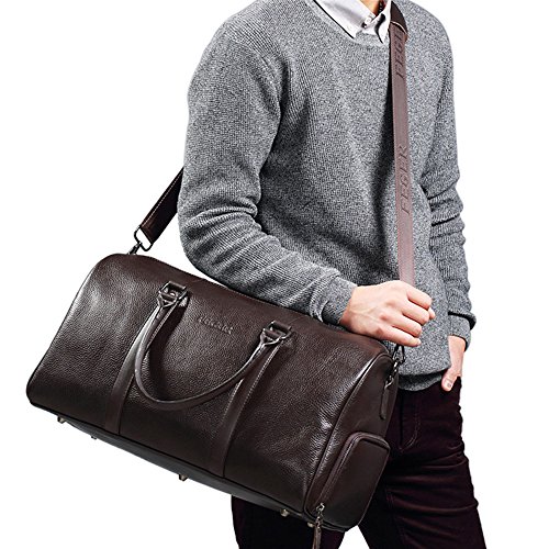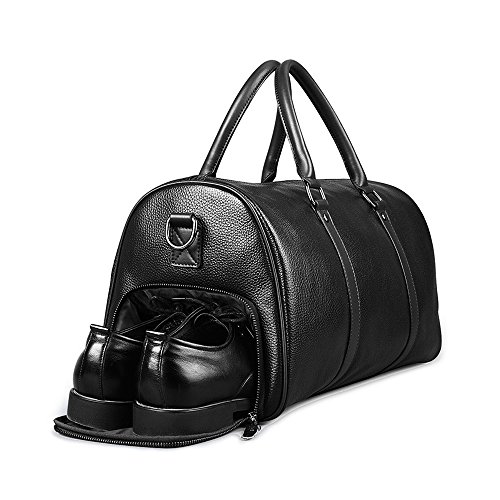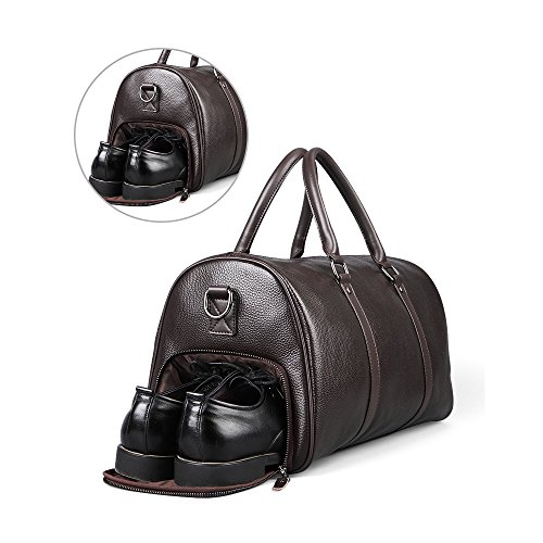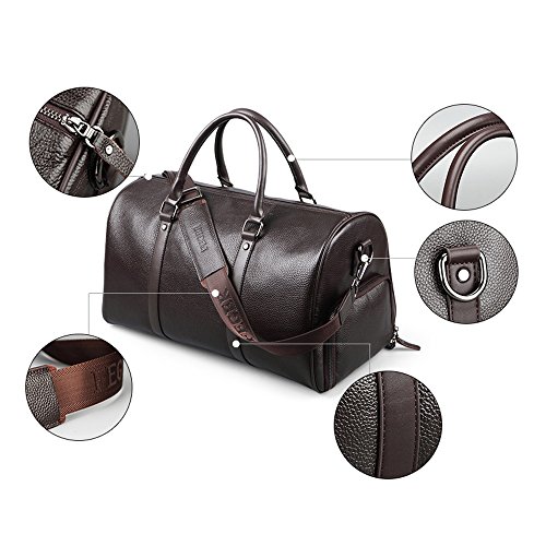 Product Dwtails: 1,MATERIAL: High Quality Genuine Cow Leather. 2,Security Closure :Heavy-duty Zipper. Zipper Closure for Your Security. 3, IMENSIONS: (L)17.32 x (W)7.48 x (H)10.23 inch, ???Open of Shoes Position : approximately 5.51 x 7.48 inch. ???The Maximum Size 16 US of Shoes Can Be Placed. 4,STRUCTURE: 1 Big Inner Compartment, ?????????????????????1 Inner Zipper Pocket. ?????????????????????1 Handy Shoe Compartment with Zipper Closure. FUTURE: 1,Large Capacity! 2,The Internal Structure of Rational Layout. 3,High Quality Hardware with Strong Durability. 4,Edge and Handle Part of the Material with Ultra-fine Fiber Reinforced PU Leather. 5,High Quality Genuine Cow Leather Wear-resistant, Scratch-resistant. 6,Removable Shoulder Strap is Adjustable with Super Wide Shoulder Pad??is More Comfortable. 7,The Bottom Have 4 Rivets Distribution in the Corner??to Prevent Wear. All in All: This??Leather Travel Bag Easily Hold Your 14 Inch Laptop, IPad, IPhone, Clothes , Shoes and Other Things. The Weekend Bag is Ideal for Plane or Train Travel.
