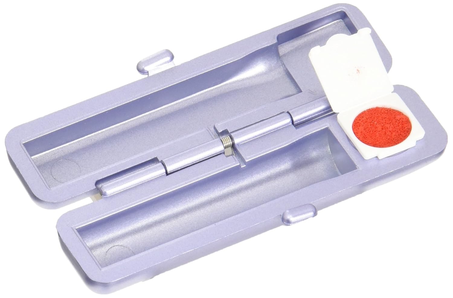 3cmx8.8cmx2cm 【収納サイズ】12×60mmの印鑑 【仕様】朱肉付き 【本体仕様】ABS樹脂 【インク】油性顔料系 【注意】朱肉部分にはインクを使用している為、衣服等につかないようご注意下さい